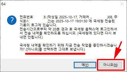 À§ °ÇµéÀº ÇÁ·Î±×·¥¿¡¼ [ÀüÀÚ¼¼±Ý°è»ê¼] -> [±¹¼¼Ã» 󸮰á°ú Á¶È¸..] ½Ã ½ÇÆÐ·Î ¸®ÅϵǸç, ½Å±Ô¿Í µ¿ÀÏÇÑ °úÁ¤À¸·Î ´Ù½Ã Àü¼ÛÇØ¾ß ÇÕ´Ï´Ù.